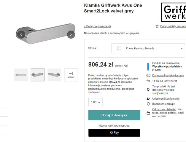 · Klamka https://ubranasciana.pl/product-pol-24574-Klamka-Griffwerk-Avus-One-Smart2Lock-velvet-grey.html