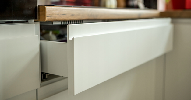 · okładzina meblowa na czole ścianki m-dzy szafkami